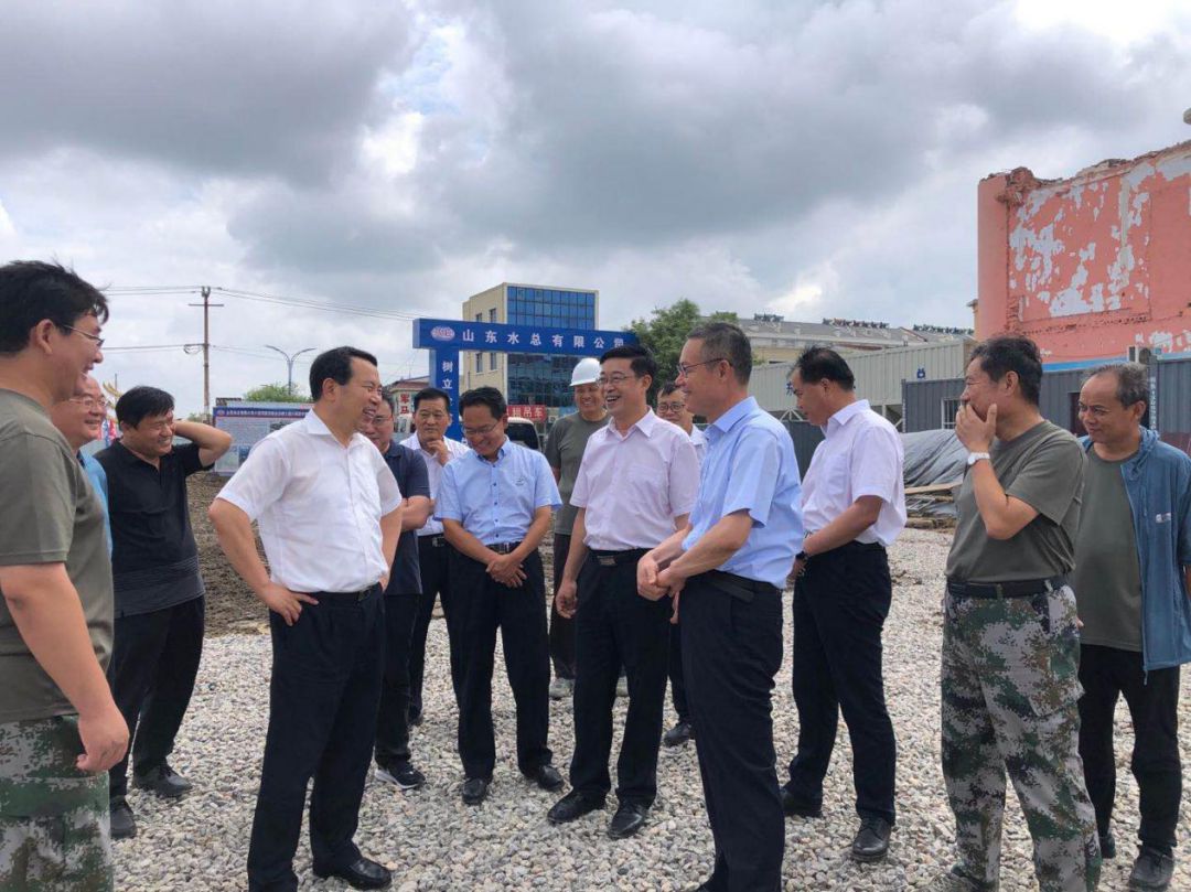 2020年7月13日,山東省水利廳廳長劉中會(huì)在壽光市委書記趙緒春的陪同下,到第二分公司負(fù)責(zé)實(shí)施的小清河防洪綜合治理工程羊橋泵站視察工程建設(shè)及防洪度汛情況,公司董事長刁望利陪同參加。劉廳長對(duì)羊橋泵站水下主體工程完工表示祝賀,對(duì)奮戰(zhàn)在施工一線的工作人員表示慰問。羊橋泵站是小清河全線開工時(shí)間最晚、施工難度最大的建筑物,山東水總能夠克服諸多困難圓滿完成工程建設(shè)任務(wù),體現(xiàn)了國企擔(dān)當(dāng)。劉廳長贊揚(yáng)了公司施工組織合理、工序銜接緊密高效,通過不懈努力向業(yè)主單位、向省水利廳交上了完美答卷。他要求在做好剩余工程施工的同時(shí)要做好防洪度汛工作,確保在建工程在汛期不出問題,備齊備足防汛物資、機(jī)械、人員,做好防大汛、抗大洪的準(zhǔn)備。