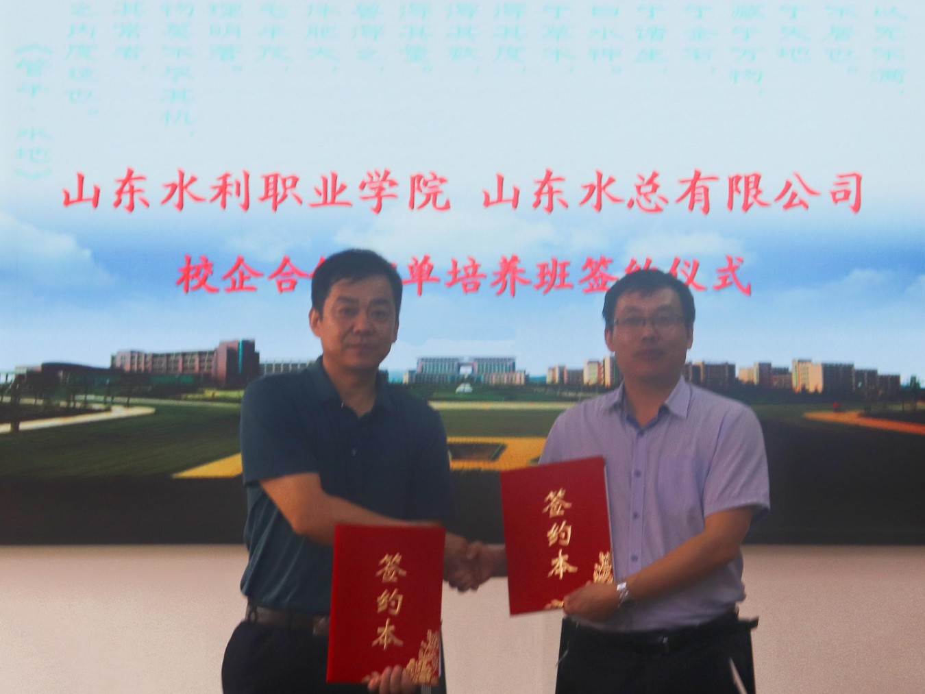 山東水總有限公司-山東水利職業(yè)學(xué)院校企合作訂單培養(yǎng)班簽約儀式暨開班典禮圓滿完成