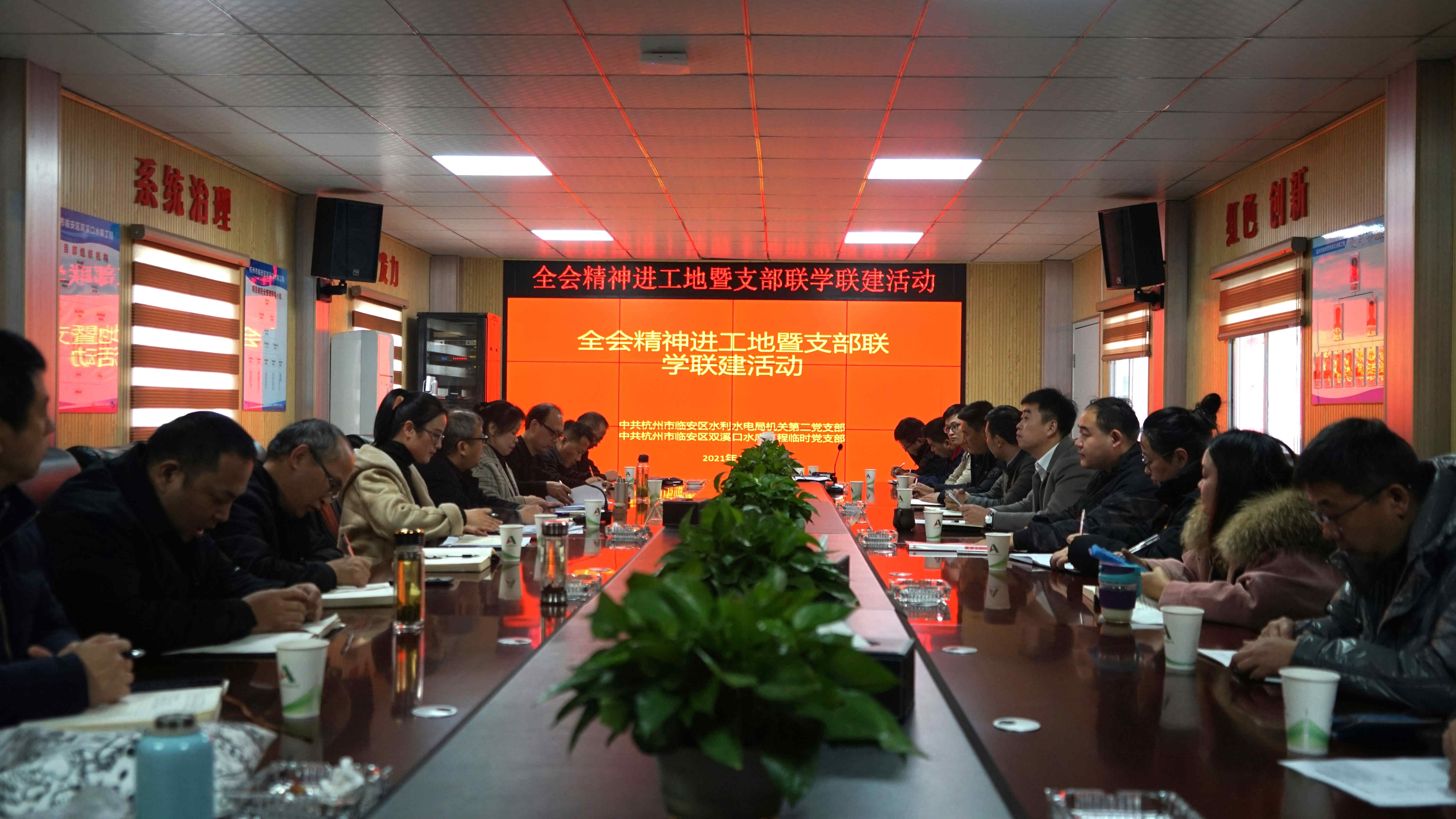 12月24日,杭州市臨安區(qū)雙溪口水庫工程臨時(shí)黨支部與杭州市臨安區(qū)水利水電局機(jī)關(guān)第二黨支部在雙溪口水庫項(xiàng)目部舉辦了六中全會(huì)精神進(jìn)工地暨支部聯(lián)學(xué)聯(lián)建活動(dòng)。