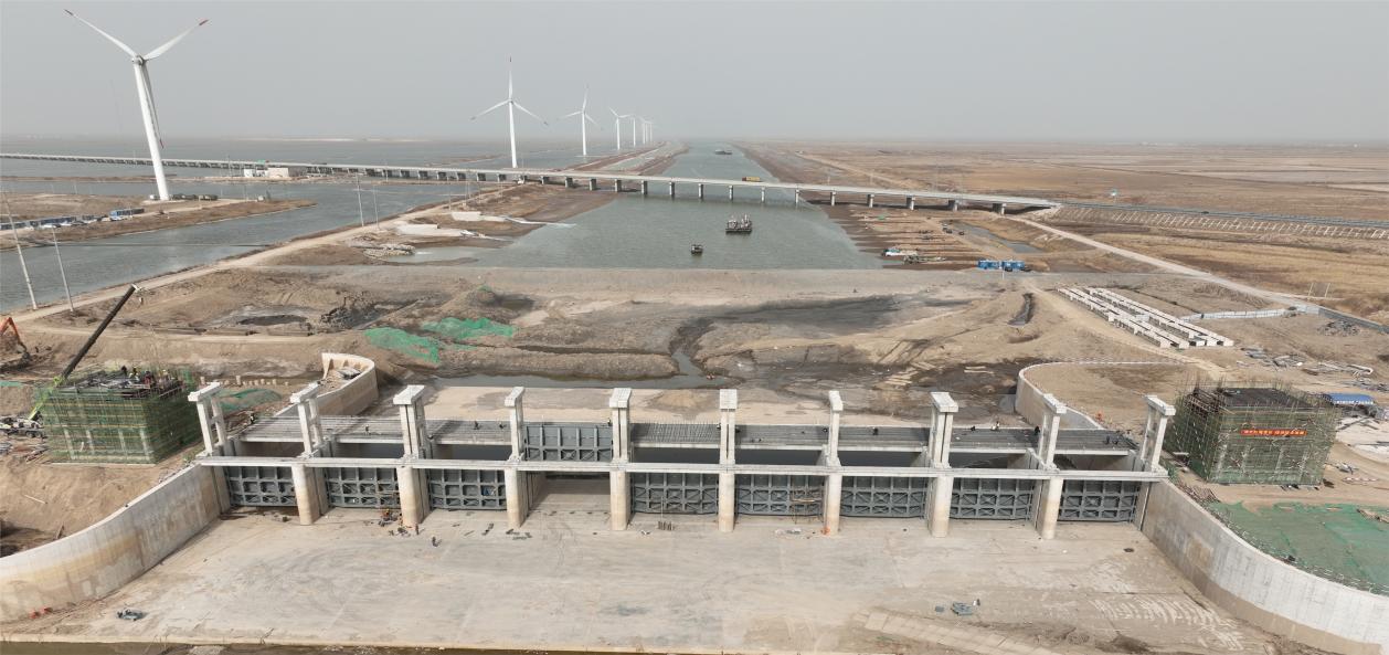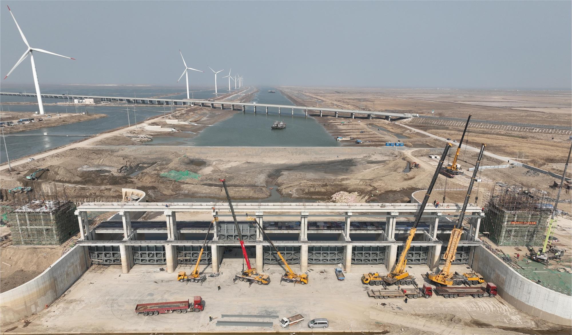 該項(xiàng)目自2023年開工以來,項(xiàng)目部秉著“起跑即沖刺、開局即決戰(zhàn)”的理念,克服臨海大風(fēng)惡劣天氣、高空作業(yè)及工序穿插作業(yè)等困難,通過項(xiàng)目部人員集思廣益,優(yōu)化施工方案,嚴(yán)格把控施工質(zhì)量,牢記安全紅線,一個(gè)月內(nèi)完成閘門安裝、交通橋板、檢修橋板及機(jī)架橋板吊裝等工作。