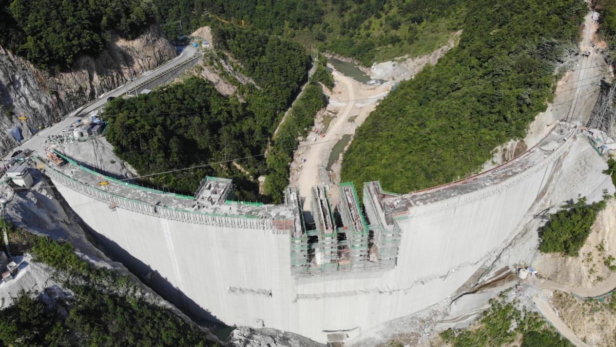 山東水總杭州市臨安區(qū)雙溪口水庫工程重力拱壩順利封頂
