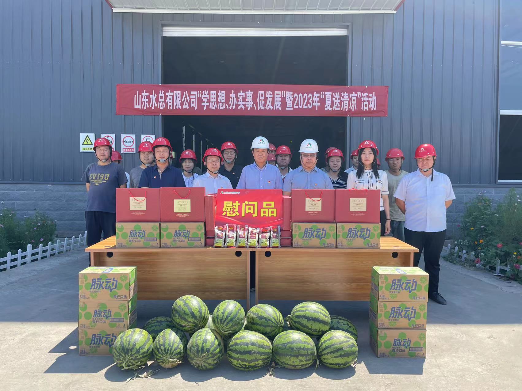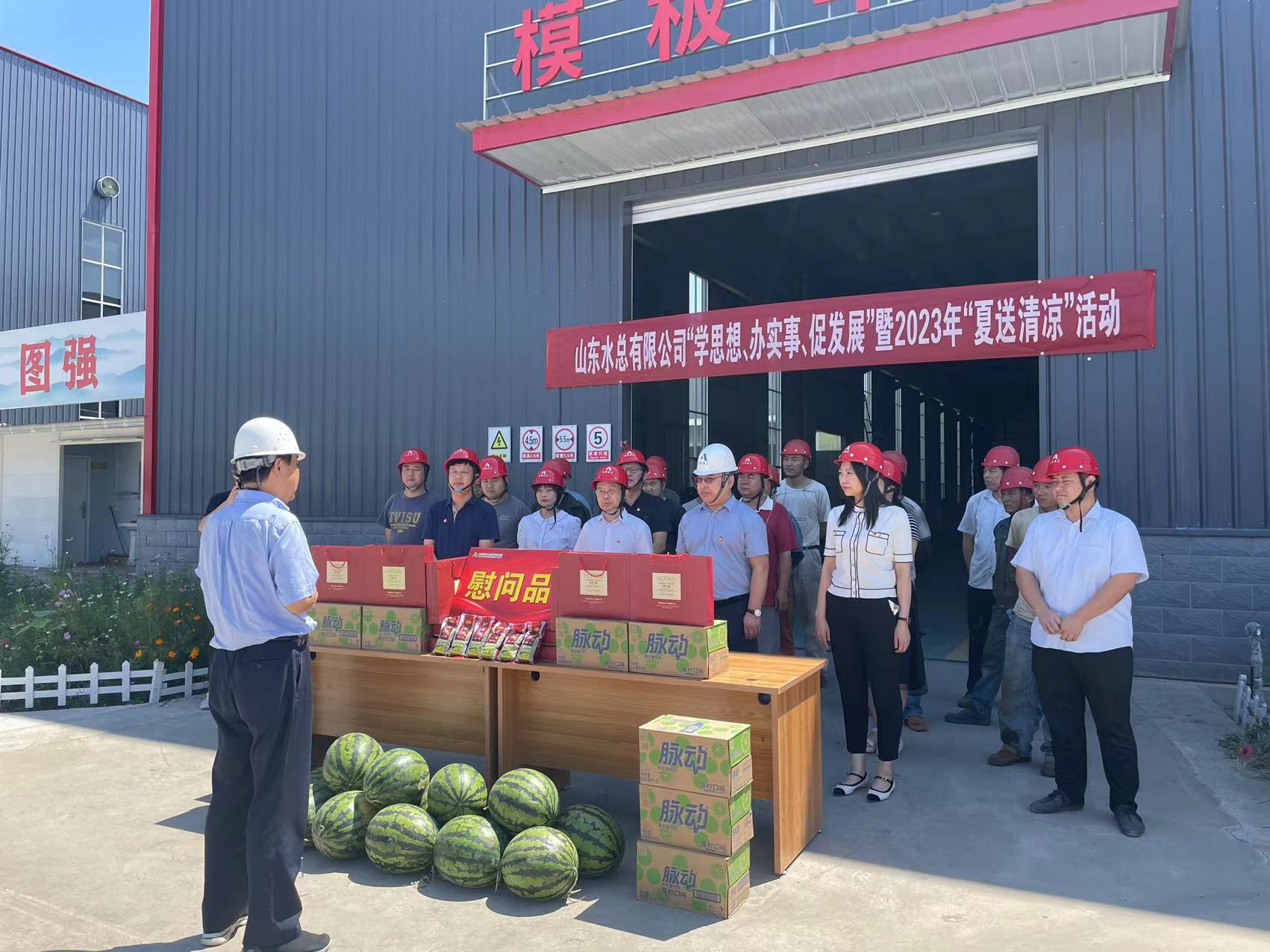 為推進(jìn)學(xué)習(xí)貫徹習(xí)近平新時(shí)代中國(guó)特色社會(huì)主義思想主題教育走深走實(shí),持續(xù)為職工群眾辦實(shí)事,傳遞公司黨委、工會(huì)對(duì)一線職工的關(guān)心關(guān)愛,7月18日,山東水總黨委委員、紀(jì)委書記朱瑞偉一行到水工機(jī)械公司開展“學(xué)思想、辦實(shí)事、促發(fā)展”暨2023年“夏送清涼”慰問(wèn)活動(dòng)。