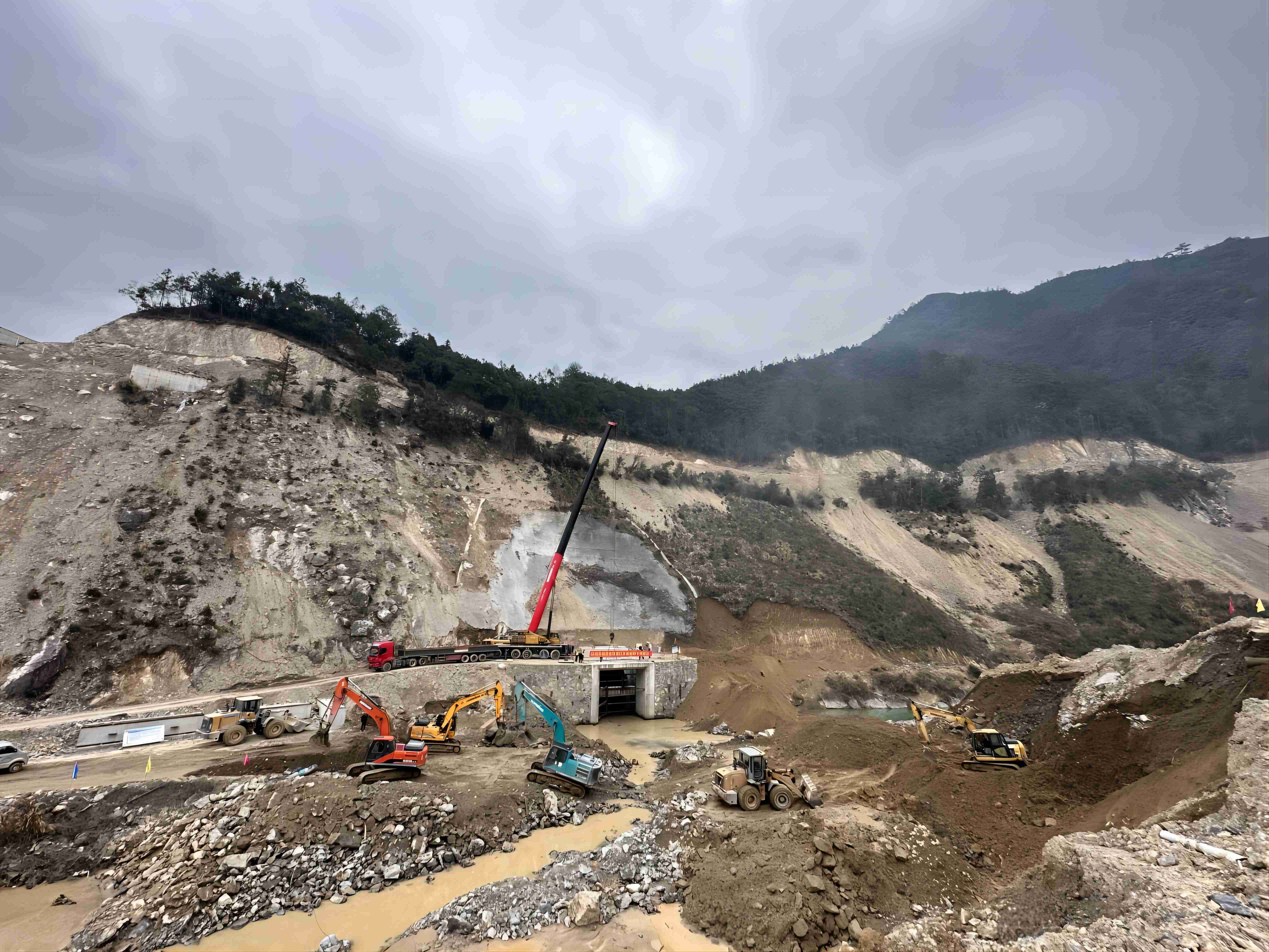 導(dǎo)流隧洞布置在大壩右岸山體內(nèi),全長207.17米,進口高程268.00米,出口高程263.20米,斷面為7米×7米城門洞型,永久封堵體長度為25米。3月14日水庫下閘蓄水后,項目部按照既定施工方案,采取“晝土建夜灌漿”科學(xué)的交叉作業(yè)模式,投入人員、材料、機械迅速就位,先后克服空間受限、工期緊張、施工危險系數(shù)高、混凝土水化熱等諸多挑戰(zhàn),在有限的時間和施工空間里,歷時一個月完成了導(dǎo)流隧洞永久封堵體混凝土的施工。目前水庫水位已蓄至310.8m高程,導(dǎo)流隧洞封堵的完成,為豐水季節(jié)發(fā)電收益提供了堅實保障,切實貫徹了早投產(chǎn)、早收益的建設(shè)口號。