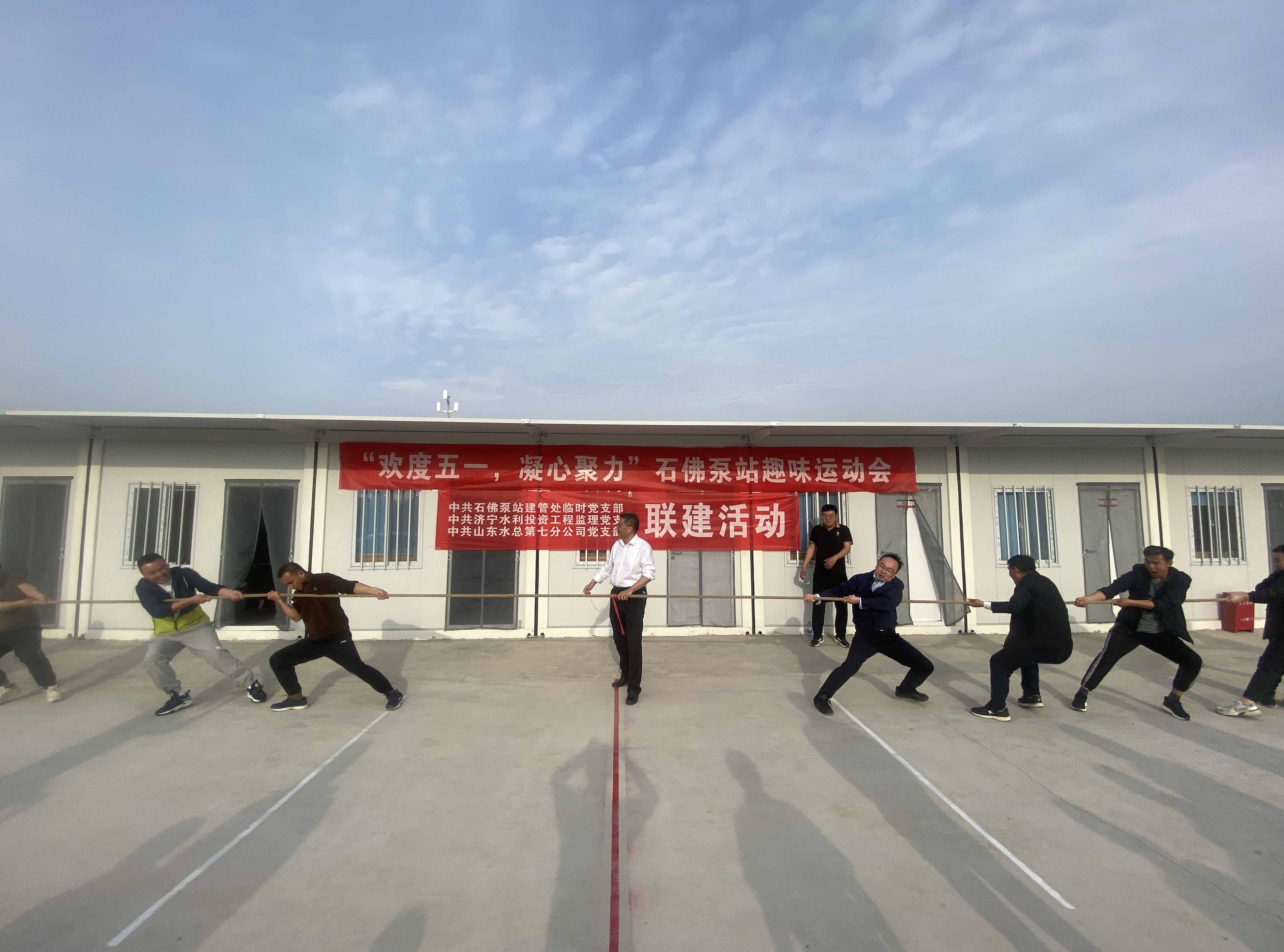 為慶?!拔逡弧眲趧庸?jié),豐富職工業(yè)余生活,4月30日,在第七分公司承建的濟(jì)寧石佛泵站項(xiàng)目現(xiàn)場,項(xiàng)目部聯(lián)合業(yè)主、設(shè)計(jì)、監(jiān)理、檢測單位舉辦了一場“歡度五一,凝心聚力”趣味運(yùn)動會。