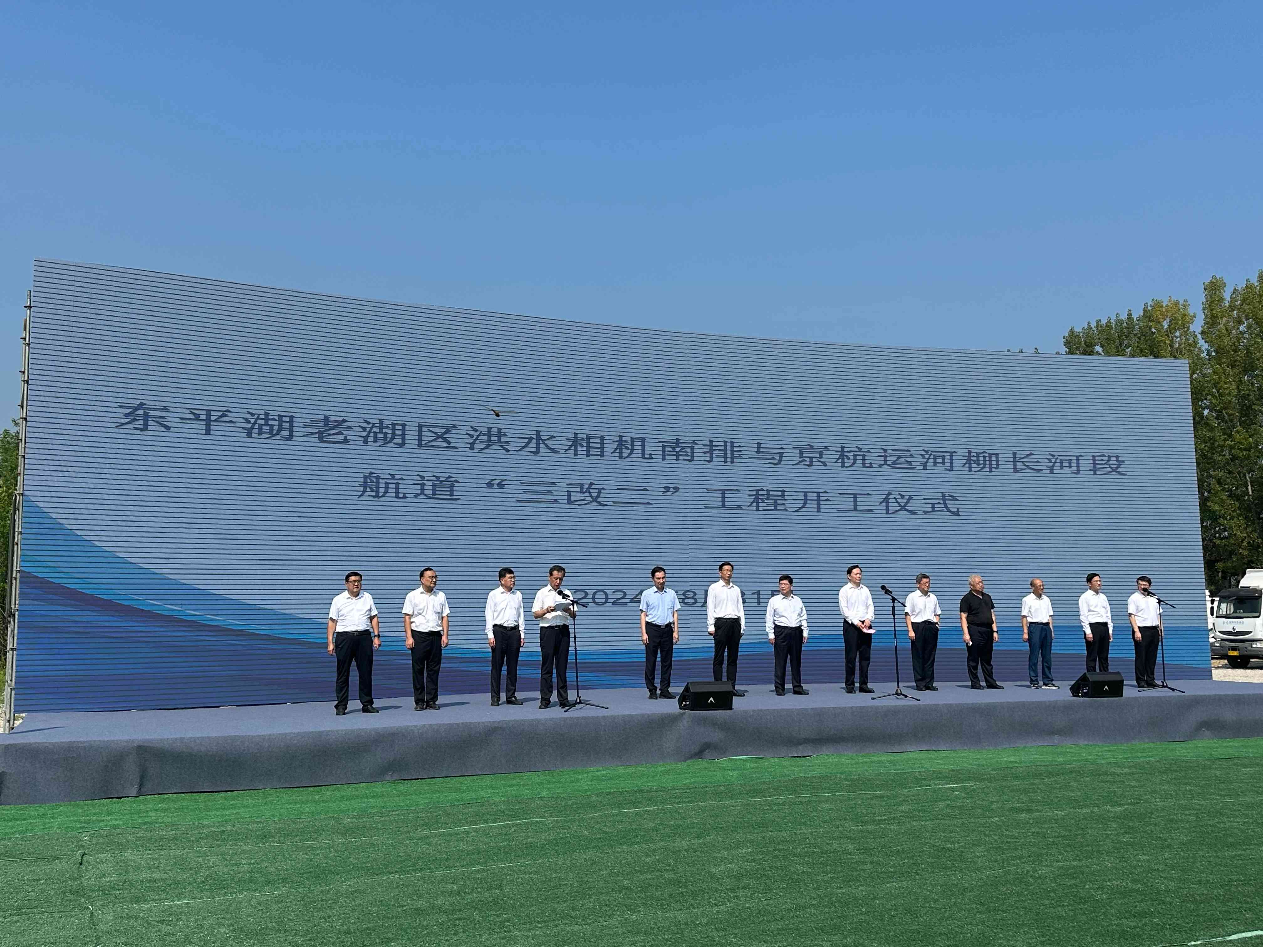 山東水總承建的東平湖老湖區(qū)洪水相機南排與京杭運河柳長河段航道“三改二”工程正式開工