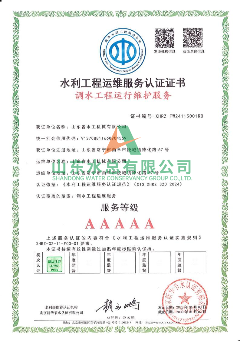 一直以來,水工機(jī)械公司高度重視水利工程運維服務(wù)的質(zhì)量與專業(yè)性,在人員配備、技術(shù)應(yīng)用、管理體系等多方面精心打磨。在認(rèn)證過程中,歷經(jīng)嚴(yán)格審核,公司憑借扎實的運維實力、規(guī)范的服務(wù)流程以及對水利工程運維高規(guī)格的執(zhí)行標(biāo)準(zhǔn),贏得了認(rèn)可。