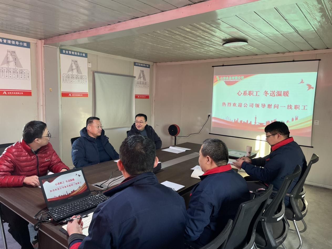 公司黨委副書記、職工董事、工會(huì)主席王坤林一行蒞臨第二分公司漳衛(wèi)河聊城段綜合治理(引調(diào)水)工程施工1標(biāo)項(xiàng)目部開展“心系職工,冬送溫暖”慰問活動(dòng)
