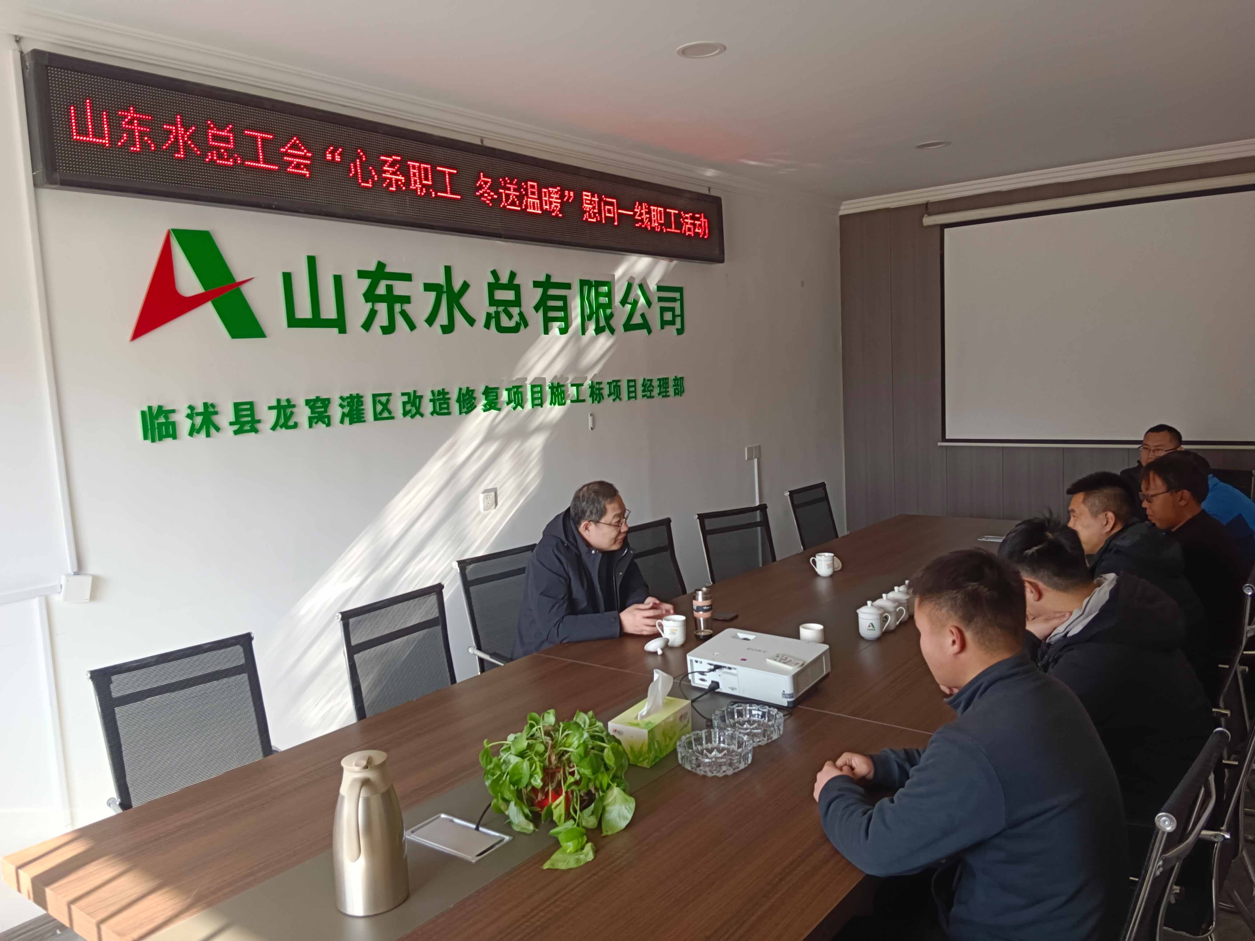 1月17日,公司黨委委員、副總經(jīng)理杜貞義一行到第三分公司臨沭龍窩灌區(qū)改造維修項(xiàng)目開(kāi)展“心系職工 冬送溫暖”慰問(wèn)一線職工活動(dòng)。
