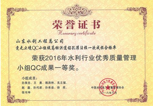 公司“提高排洪道鉆孔灌注樁一次成樁合格率”等四項成果榮獲2016年水利行業(yè)優(yōu)秀質(zhì)量管理小組QC成果獎