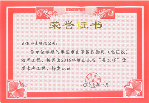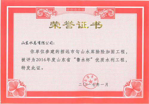 公司“招遠(yuǎn)市勾山水庫除險(xiǎn)加固工程”等八項(xiàng)工程被評為2016年度山東省“魯水杯”優(yōu)質(zhì)水利工程