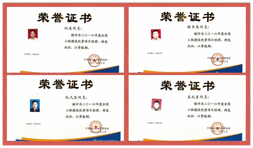 公司向建等四名同志被評為2016年度全國工程建設(shè)優(yōu)秀項目經(jīng)理