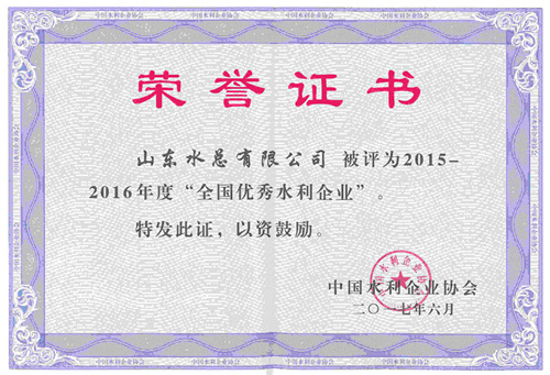 公司榮獲2015-2016年度“全國優(yōu)秀水利企業(yè)”