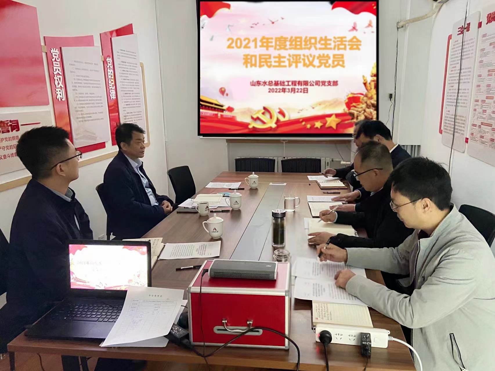 3月22日上午,基礎(chǔ)公司黨支部召開2021年度組織生活會并開展了民主評議黨員工作。公司黨委委員、副總經(jīng)理李光市、投資經(jīng)營部副部長史鳴到會指導(dǎo)。會議由黨支部書記朱兆同主持,基礎(chǔ)有限公司全體黨員參加了此次會議。