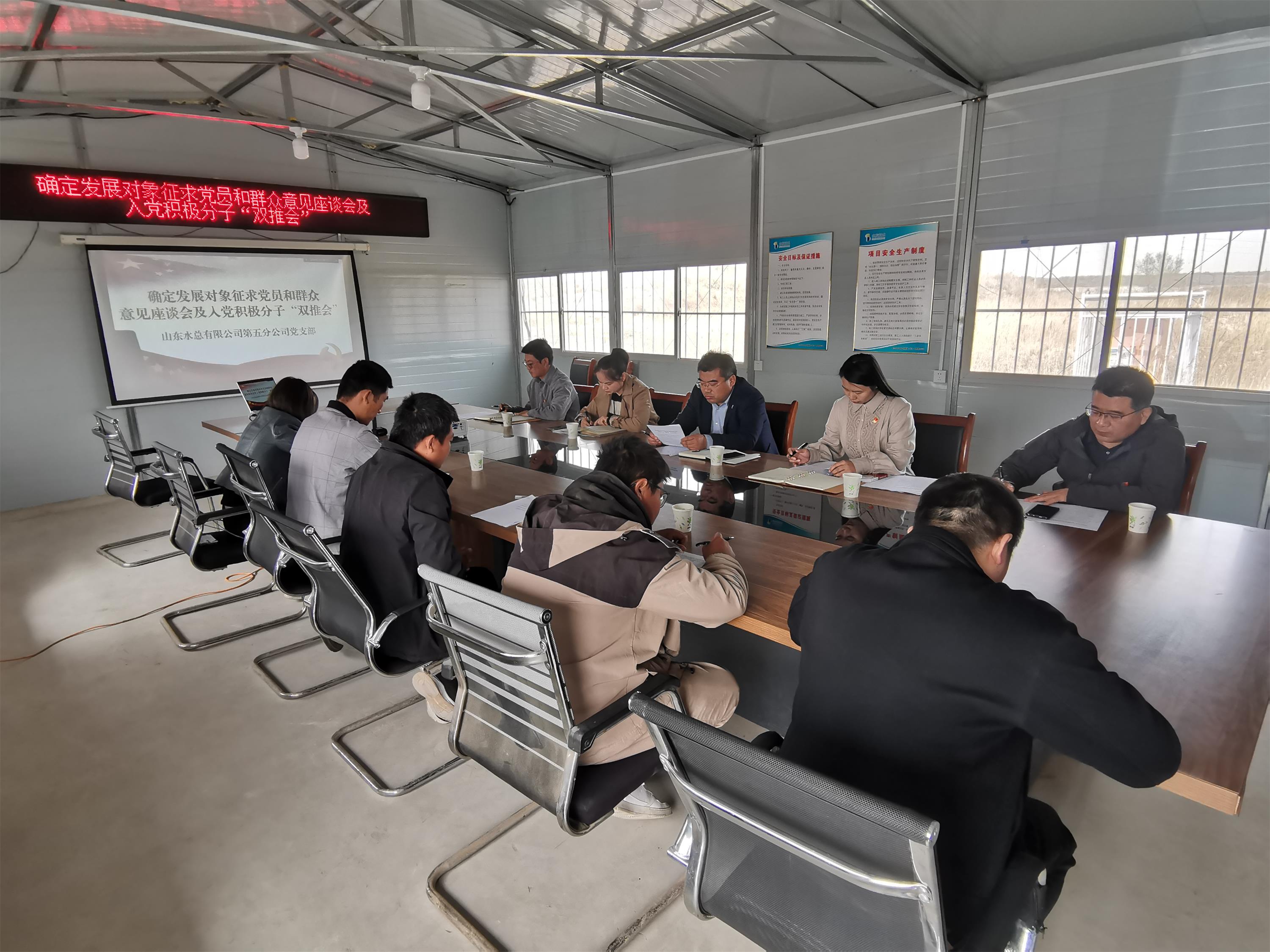 4月12日,第五分公司黨支部召開全體黨員大會(huì),確定發(fā)展對(duì)象和“雙推”入黨積極分子。會(huì)議由黨支部書記蔡國(guó)森主持,公司全體黨員及員工代表參加了會(huì)議。
