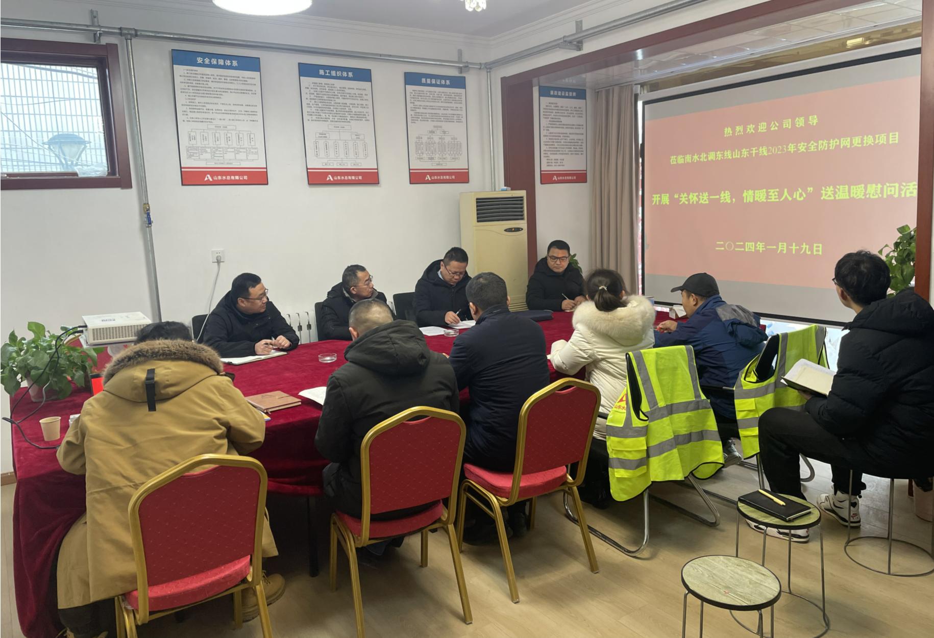 1月19日,公司黨委委員、副總經(jīng)理袁英杰,工程管理部相關(guān)人員一行到南水北調(diào)東線山東干線2023年安全防護(hù)網(wǎng)更換項(xiàng)目,開展“關(guān)懷送一線 情暖至人心”送溫暖慰問活動