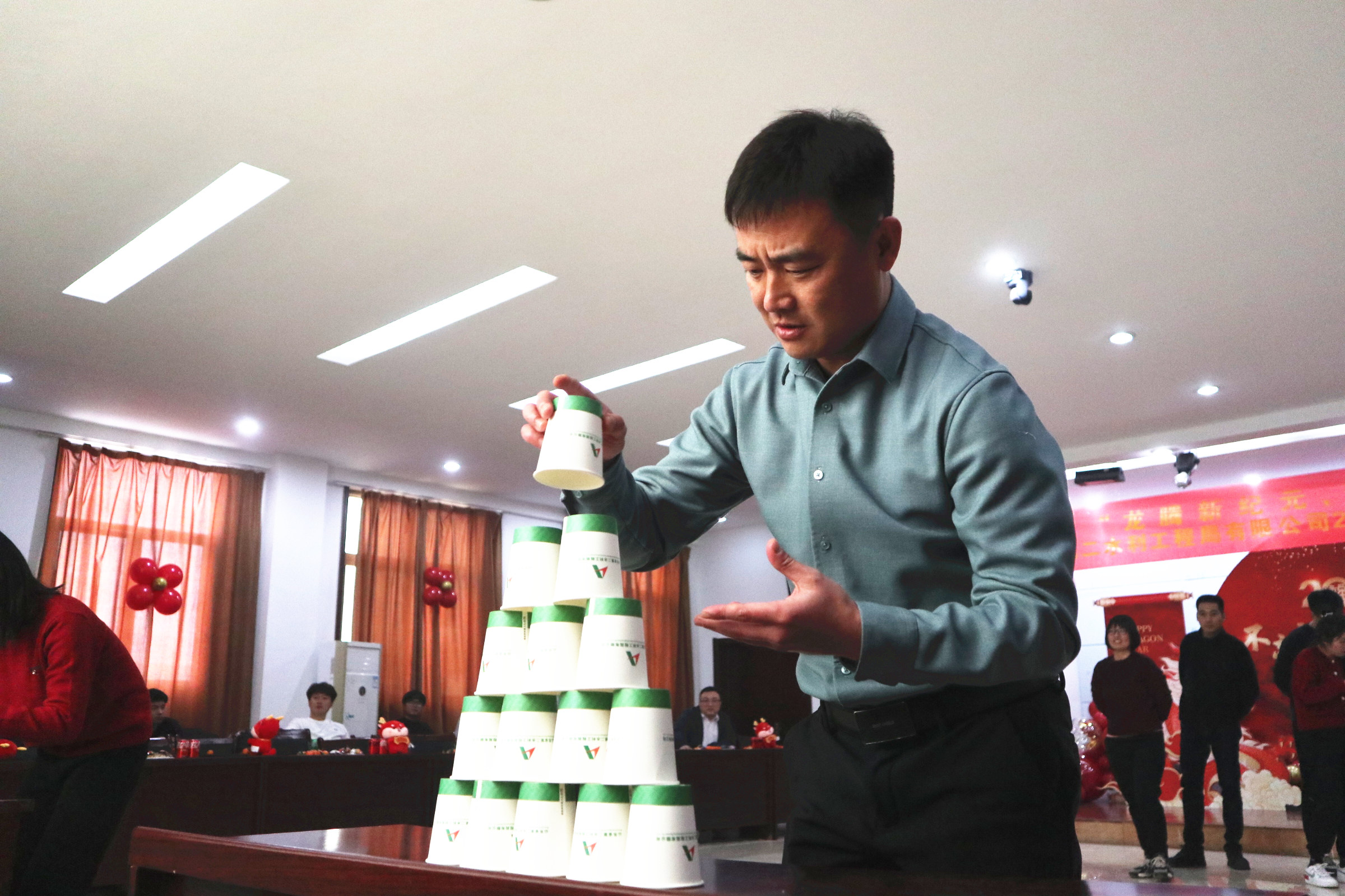 此次運動會集趣味性、協(xié)作性、競爭性于一體,包括同舟共濟、疊紙杯接力、勺子大作戰(zhàn)、雙龍戲珠、趣味保齡球、蒙眼擊鼓、袋鼠跳跳、夠級、摜蛋等多個項目。比賽現場既緊張激烈,又妙趣橫生,每項運動不僅考驗參賽選手的體力與動作協(xié)調性,更是參賽隊伍團結協(xié)作和智慧的完美比拼。賽場上,加油聲、吶喊聲此起彼伏,歡聲笑語不絕于耳。