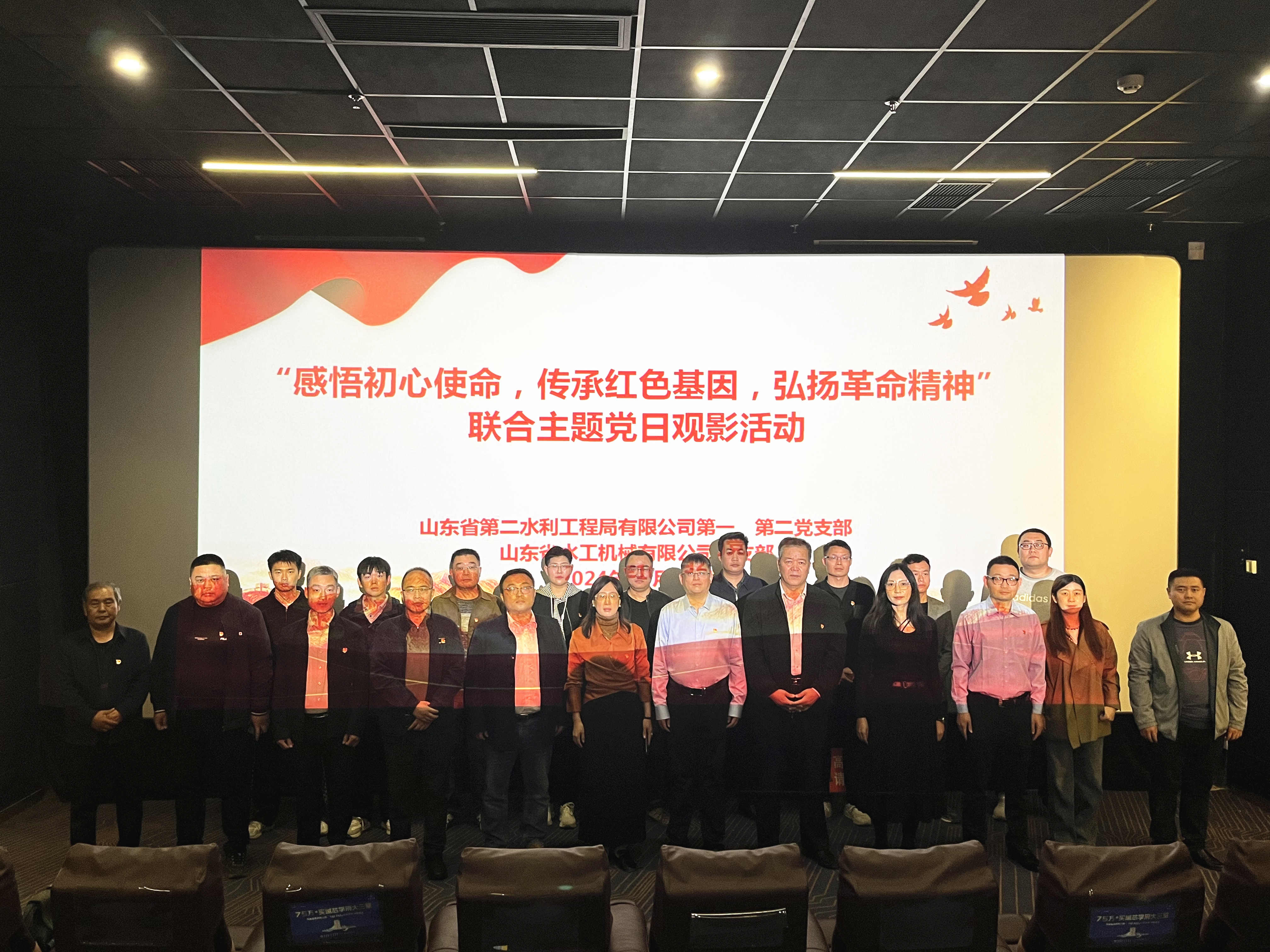宣講結(jié)束后,二局有限公司第一、第二黨支部與水工機(jī)械公司黨支部組織黨員們到曲阜藍(lán)海影城共同觀看了紅色電影《一生交給黨》。該部影片根據(jù)中國(guó)共產(chǎn)黨優(yōu)秀黨員、杰出的無(wú)產(chǎn)階級(jí)革命家周逸群的故事改編而成,講述了周逸群等革命烈士為追求真理,救民于水火而拋頭顱灑熱血的事跡,生動(dòng)展現(xiàn)了共產(chǎn)黨人為了初心使命勇往直前、百折不撓、不畏犧牲的革命精神。