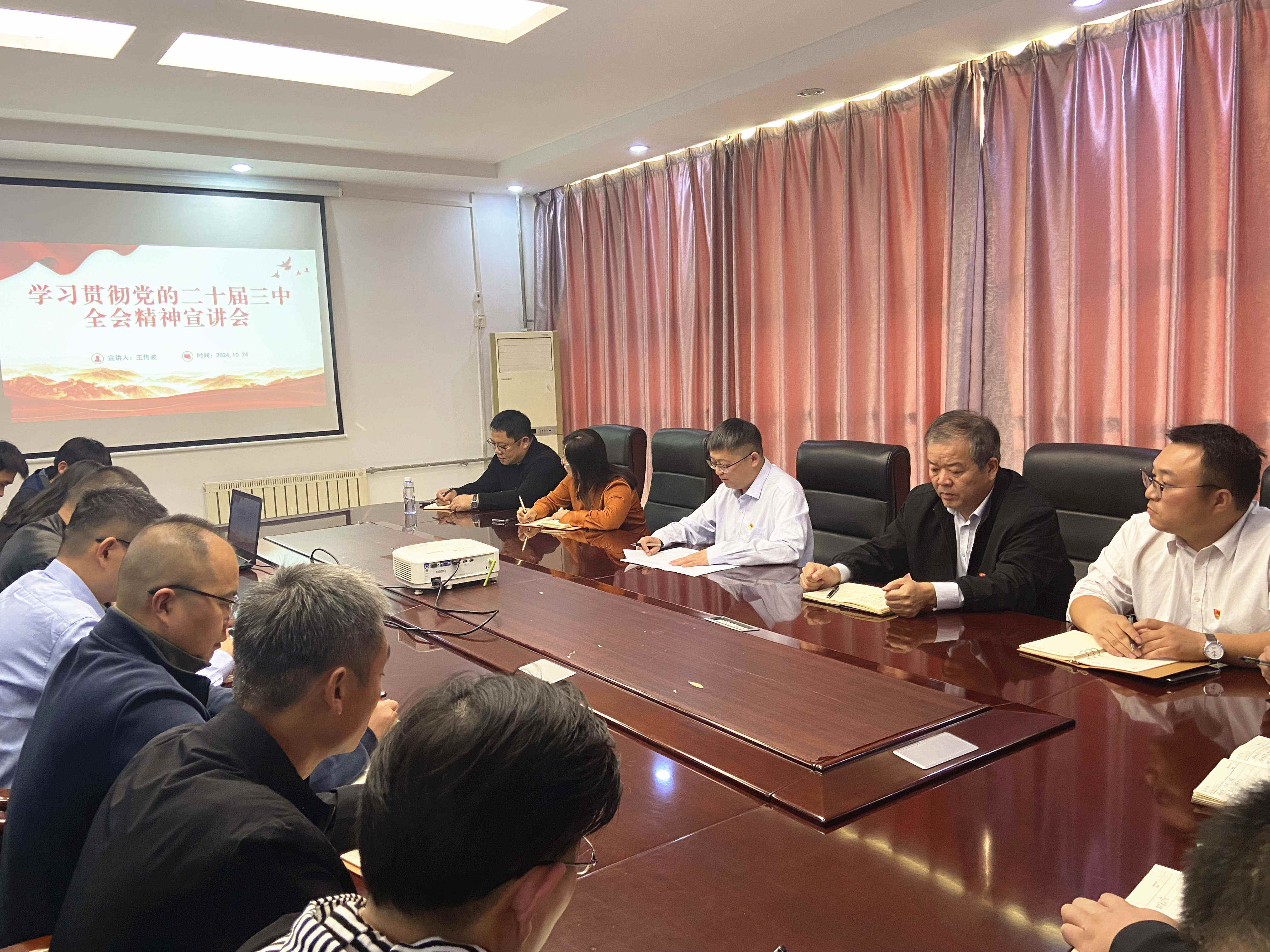 活動(dòng)伊始,二局有限公司黨委書記、總經(jīng)理王傳波在曲阜駐地三樓會(huì)議室以“深入學(xué)習(xí)貫徹黨的二十屆三中全會(huì)精神 以釘釘子精神抓好改革任務(wù)落地落實(shí)”為題,向二局有限公司全體黨員進(jìn)行了黨的二十屆三中全會(huì)精神專題宣講。他圍繞水總公司黨委關(guān)于學(xué)習(xí)貫徹全會(huì)精神的部署要求,結(jié)合公司實(shí)際,重點(diǎn)闡述了黨的二十屆三中全會(huì)的精神要義和實(shí)踐要求,詳細(xì)講解了關(guān)于進(jìn)一步全面深化改革的重大意義、重大成就、以及貫徹落實(shí)全會(huì)精神的具體措施,讓大家對(duì)黨的二十屆三中全會(huì)精神及全面深化改革有了更加全面、深刻的理解,并要求公司全體黨員深學(xué)細(xì)悟、全面把握全會(huì)精神內(nèi)涵,自覺用全會(huì)精神武裝頭腦、指導(dǎo)實(shí)踐,持續(xù)以改革之力助推公司高質(zhì)量發(fā)展再上新臺(tái)階。