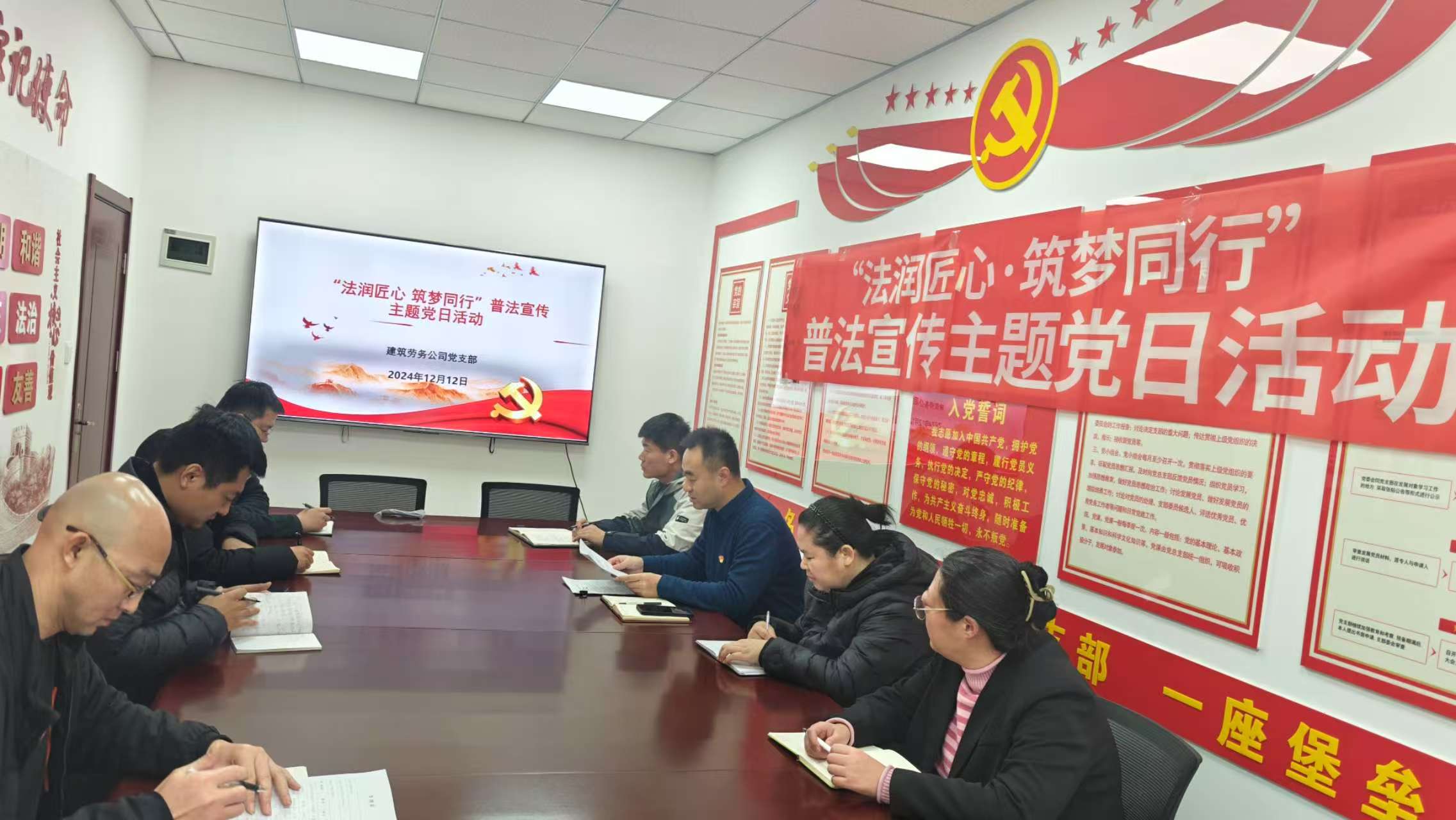 為深入學(xué)習(xí)習(xí)近平法治思想和習(xí)近平文化思想,弘揚(yáng)憲法和法治精神,打造法治國(guó)企,12月12日,建筑勞務(wù)公司黨支部組織開展“法潤(rùn)匠心 筑夢(mèng)同行”普法宣傳主題黨日活動(dòng)。